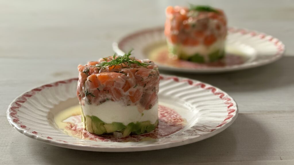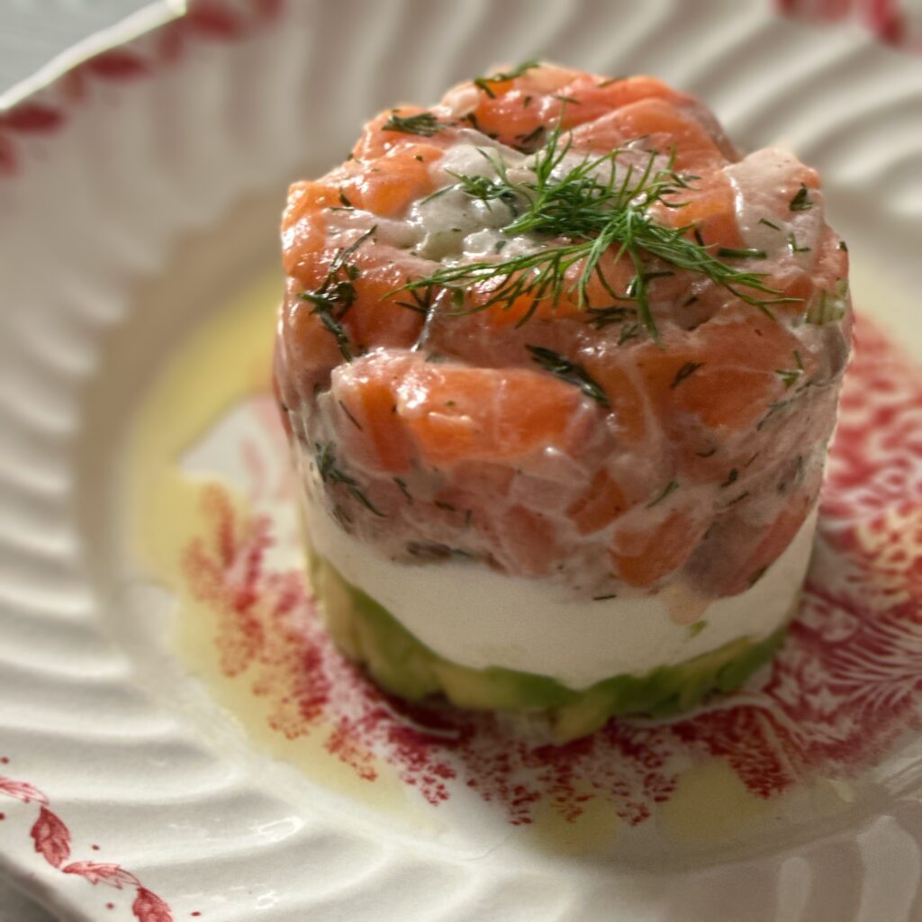 「アボカドとサーモン、新玉ねぎのタルタル」