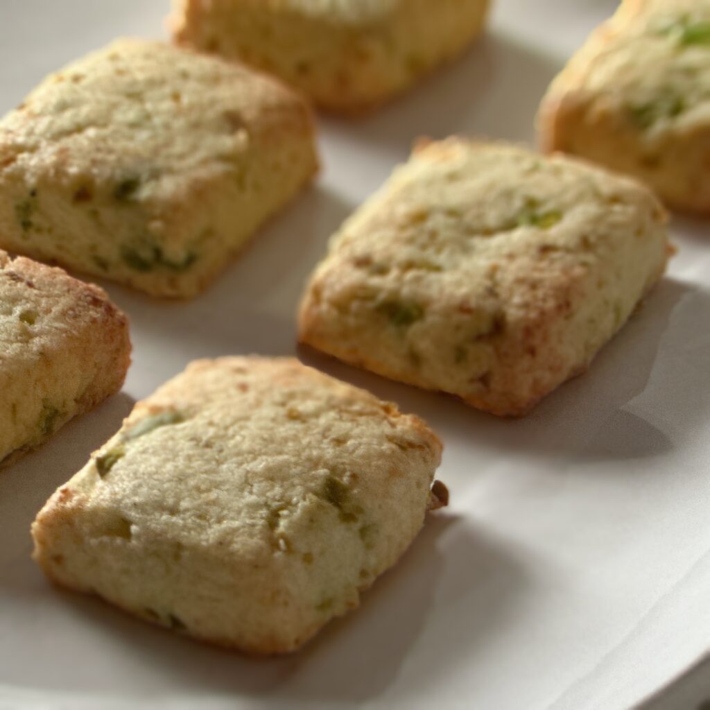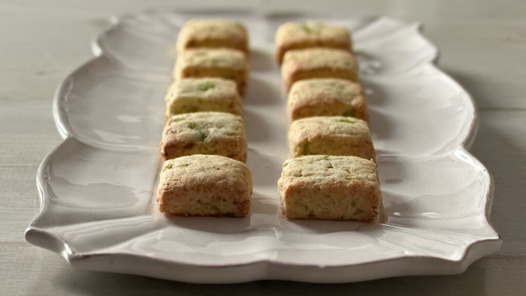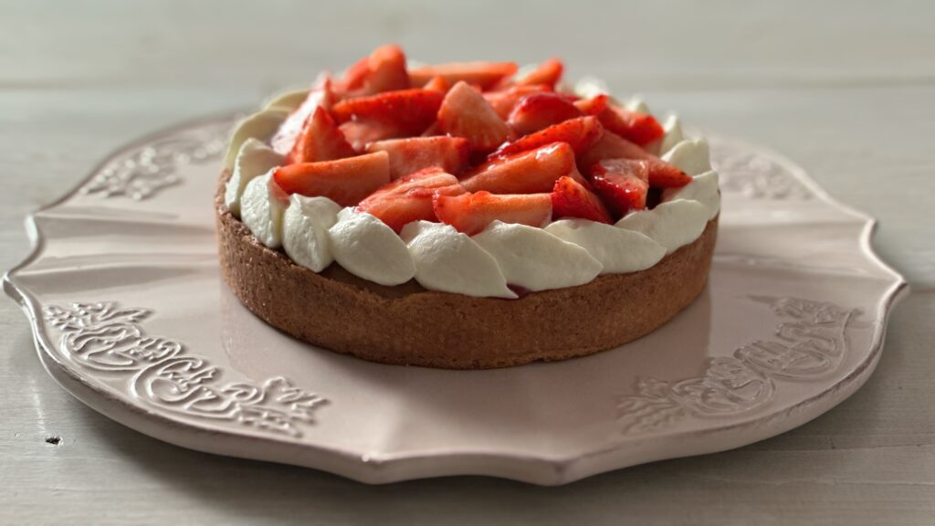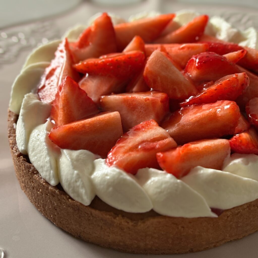 4月はいちごをたっぷり使ったタルトと、春野菜のそら豆を使った塩味のクッキーです。