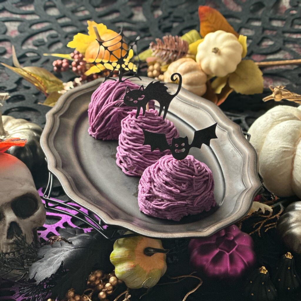 今回は紫芋のペーストを使ったハロウィンにピッタリのモンブランを作ります。