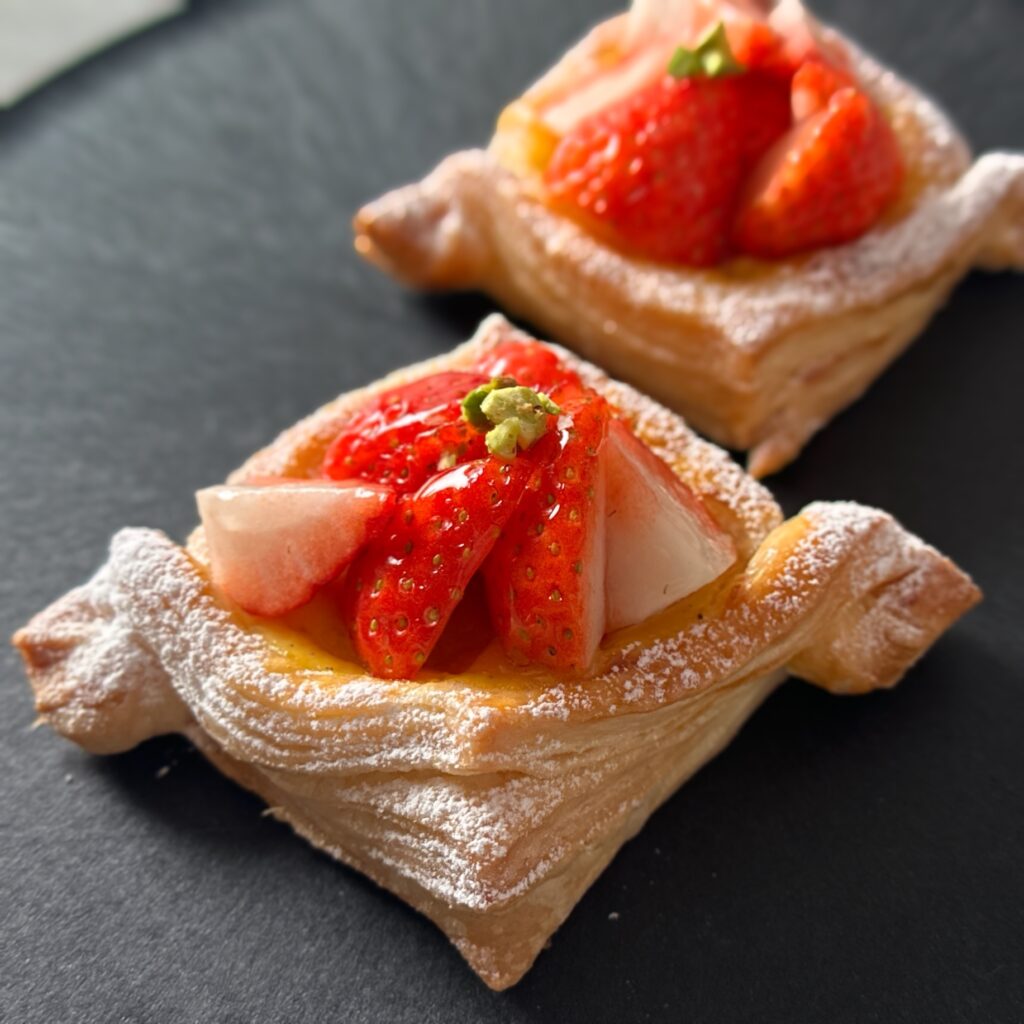 2番パイ生地(残り生地)を使って苺のパイを作ります。
